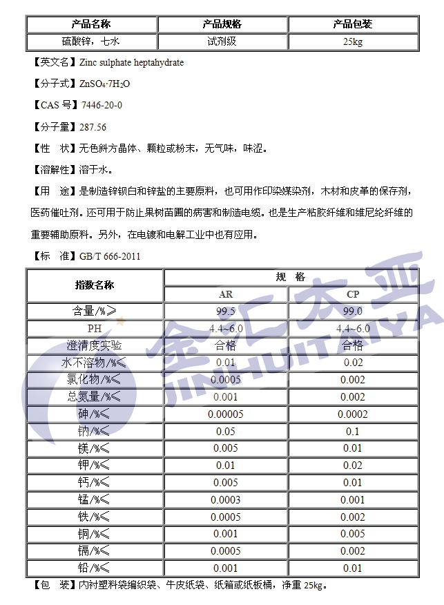 产品类别:硫酸盐---硫酸锌